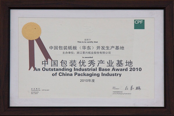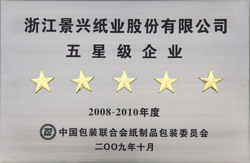 | 2010. | 06. | 景兴纸业被中国造纸协会、中国财贸轻纺烟草工会授予“全国造纸行业劳动关系和谐企业”称号。 |
